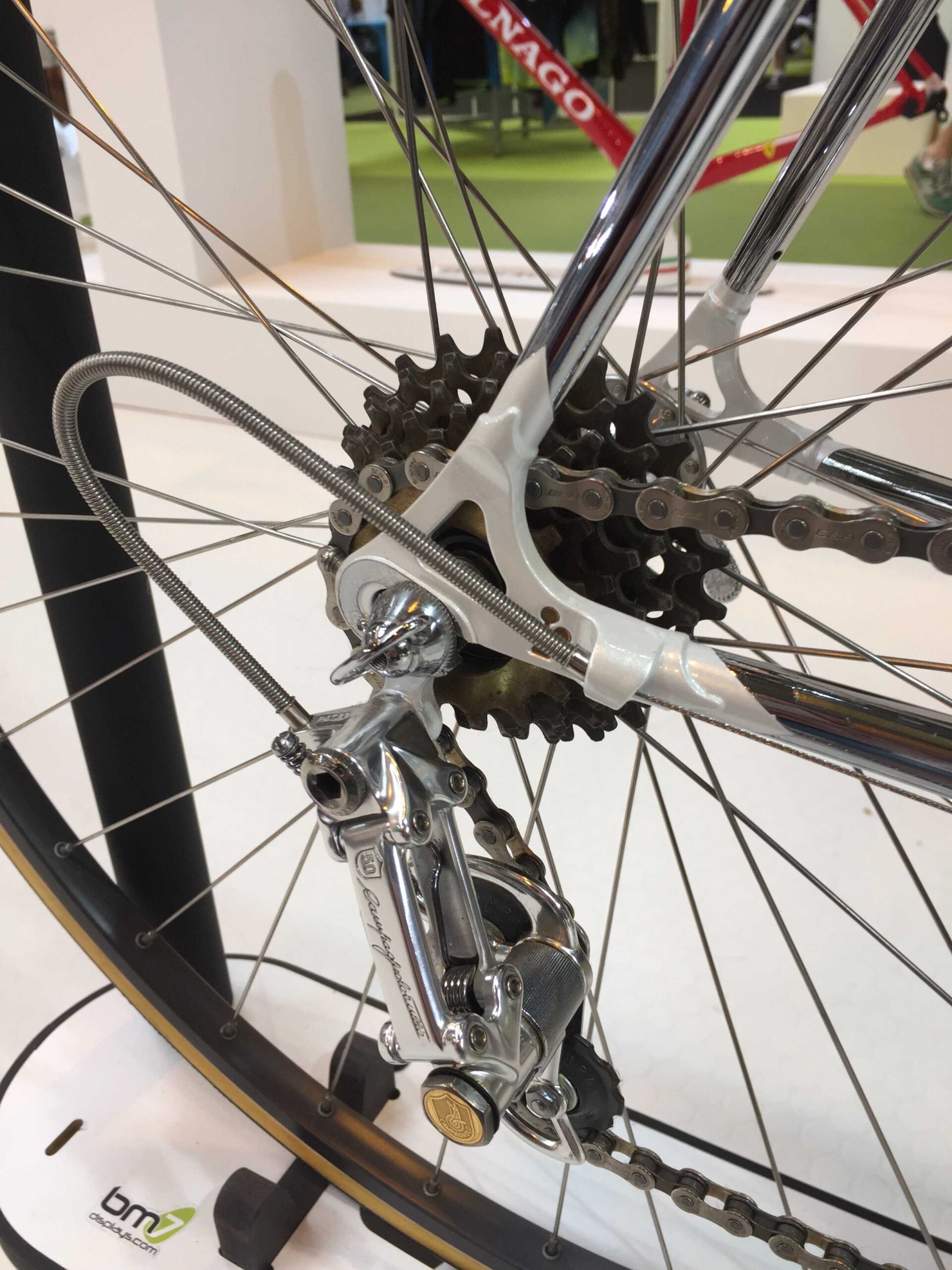 Of all the bikes I passed at the show this was the one getting the most attention. It looked resplendent in white sitting on its stand at the edge of the Colnago display.