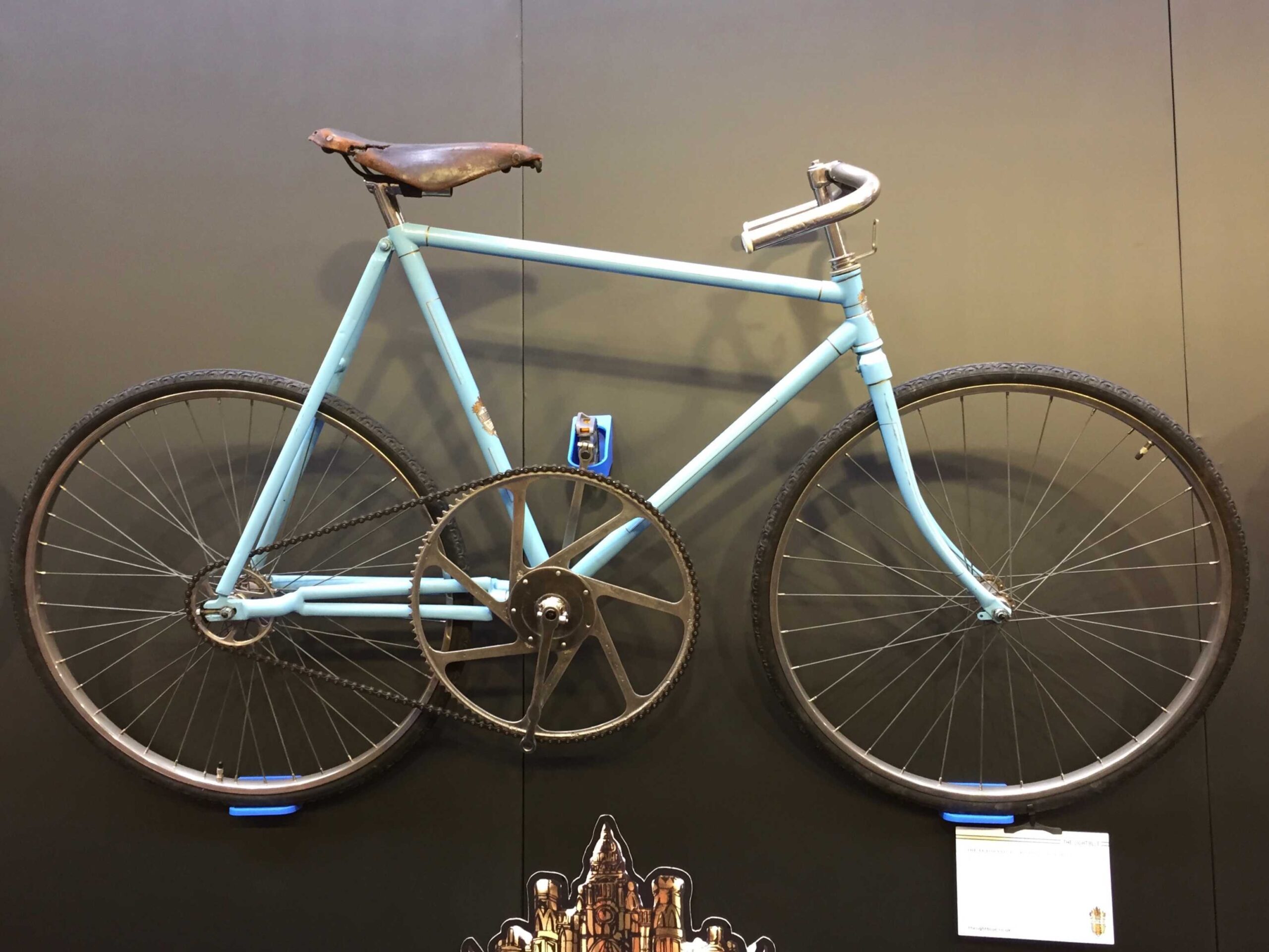 The first thing that hits you when passing this stand is the J A Townsend original bike hanging from the wall with its incredible 100 tooth front chainring!
